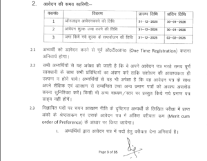 iv) उम्र सीमा अभ्यर्थी की उम्र की गणना मैट्रिक अथवा समकक्ष परीक्षा के प्रमाण-पत्र में अंकित जन्म तिथि के आधार पर की जायेगी। कट ऑफ तिथि के अनुसार अभ्यर्थियों की उम्र सीमा आरक्षण कोटिवार निम्न रहेगीः